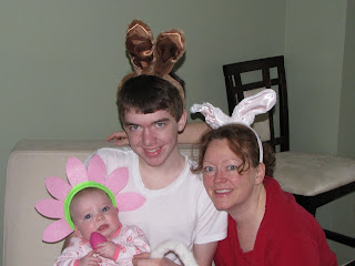 Here are a few pics! This is Little Miss yesterday right before going to Grandma's house for Easter dinner. She got spoiled and ate like a fiend - laughter resounded as she opened her mouth over and over like a hungry baby bird trying to scoop up more mashed potatoes, peas and carrots! Our Little Piglet also enjoyed some lemon meringue pie for dessert!
