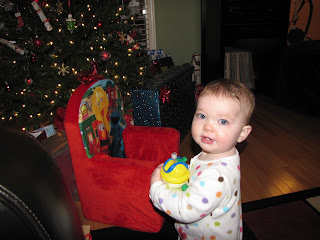 Here is Christmas morning when Jilly found her new chair from Santa!