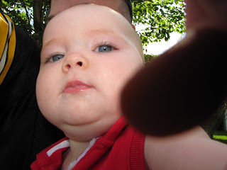 Just a cute pic of my little patootie. You can see she's actually getting hair. Real hair! Unfortunately it's coming in in a bit of a mohawk, but I've decided to let her rock the mohawk and get some gel (or sweet potatoes - they have the same effect) and spike her hawk! Pics to come!