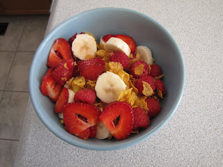 Alright now - in all honesty for a 17 yr old boy to wash and cut up raspberries, strawberries and banana to go on his cereal seems a pretty big feat, so bravo Kiddo! (It looks yummy doesn't it?)
