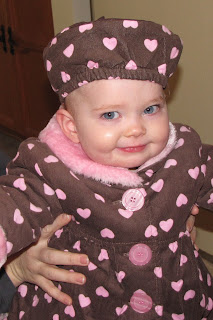 We went to visit my Grandma today - she was happy to hear we would be coming so off we went. Miss Jillian wore her birthday coat and hat for the first time. She wasn't super keen on the hat but we got a few pics.